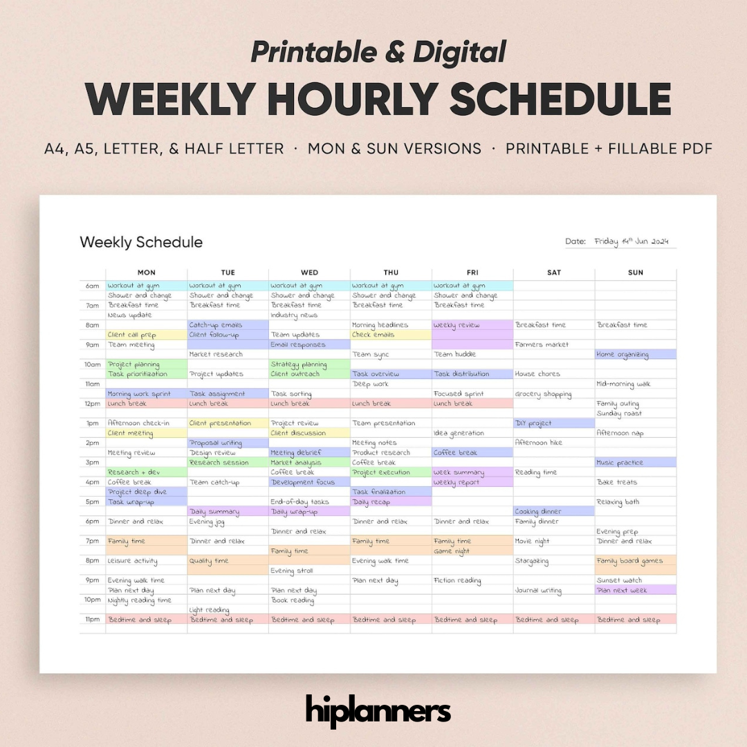 Welcome to HiPlanner – Your Ultimate Weekly Hourly Schedule Template